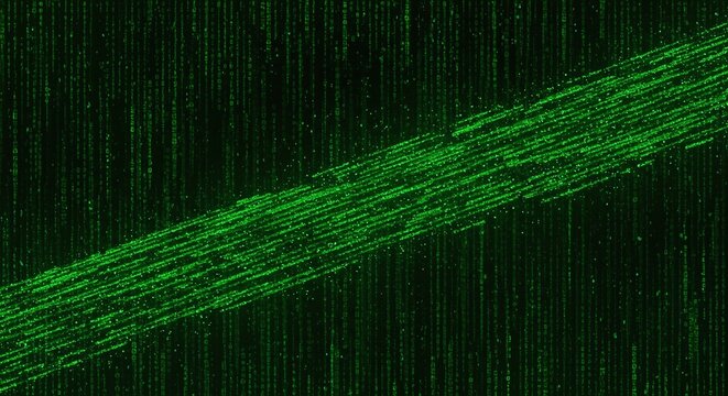 Digital data stream with green binary code