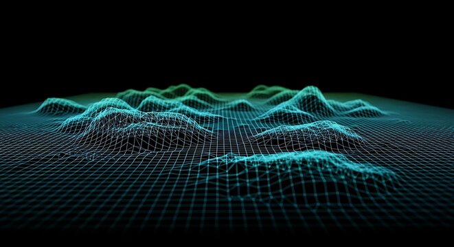 Abstract representation of flowing binary code on a dark background in a digital landscape