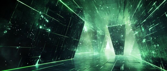 Green digital corridor, glowing data stream.