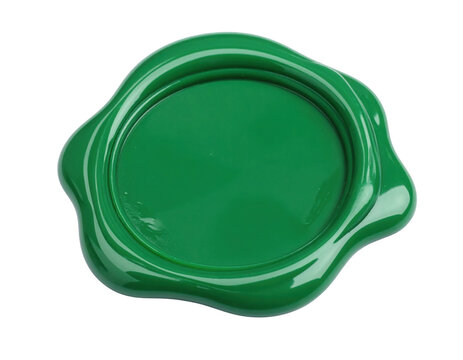 A glossy green blob resembling a paint or wax seal, featuring a rounded, wavy edge, showcasing a smooth surface.