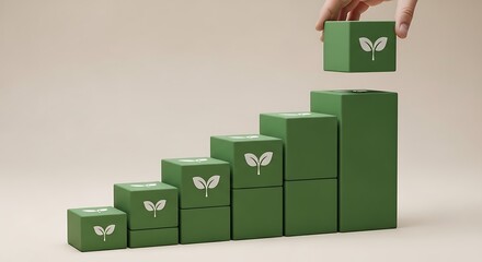 Sustainable growth concept with green blocks representing growth and development
