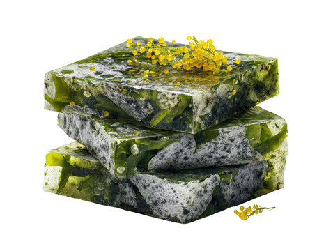 Colorful powder pigment close up shot of blue pink and green blocks on gray background for art or makeup
