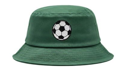 A green bucket hat with a soccer ball icon. It is perfect for sunny days at the park or playing a soccer game transparent background