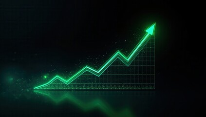 Green arrow going up over chart, showing a business profit or increase in value on dark background
