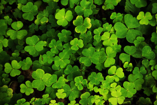 Small green Clover leaves pattern background, Natural and St. Patrick's day background and shamrock wallpaper. vacation and holiday clovers symbol,Spring concept.