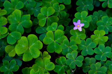A lush, green clover field fills the frame, creating an eye-catching texture suitable for various design applications
