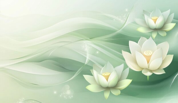 Delicate white lotus flowers on flowing green background (1)