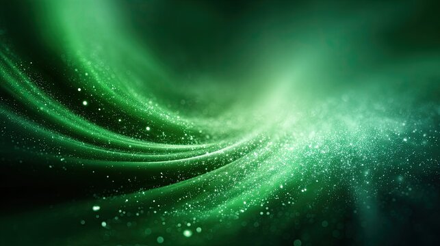 Stunning green abstract waves background with glowing particles for technology, science, or futuristic design projects giving dynamic modern feel
