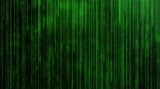 A vibrant display of green binary code flows down a dark backdrop, creating a mesmerizing effect that illustrates the concept of digital information exchange
