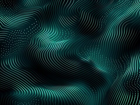 Abstract green digital waves illuminated with dots