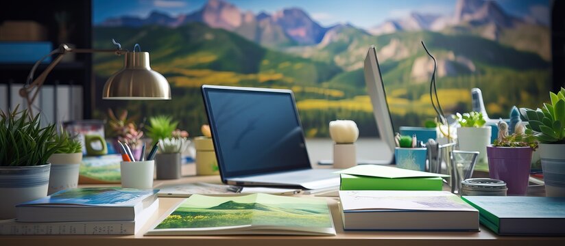 desk in modern green office