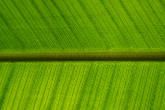 The play of light and shadows, the texture of straight lines near the green leaf of a banana palm