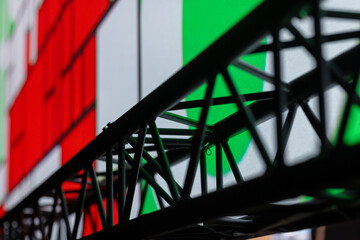 Dynamic table tennis players practicing smash in indoor sports hall with green graphic overlay