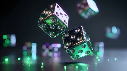 Diagonal streaks of brilliant green illumination flow across a dark, metallic background