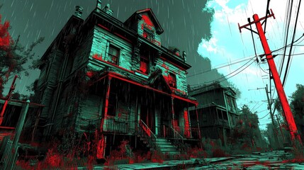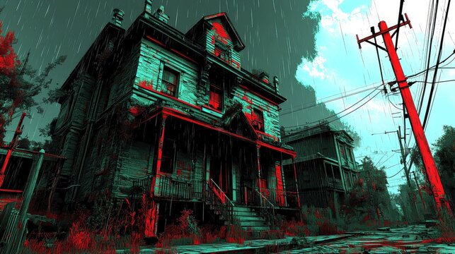 A striking abstract image showcasing a portrait of a person illuminated with vibrant red and green lighting, evoking a sense of mystery and futuristic art style.