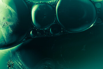 Lots of air bubbles in the green liquid. Macro image.