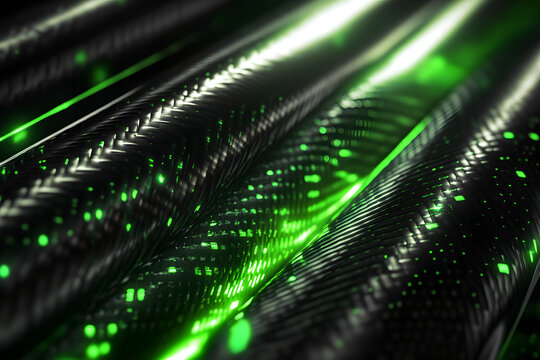 Futuristic green neon light streaks on black surface, abstract glowing digital lines, technology background, sci-fi energy flow concept, cyber wave texture with illumination