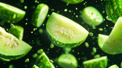 Fresh green melons in motion for summer design inspiration