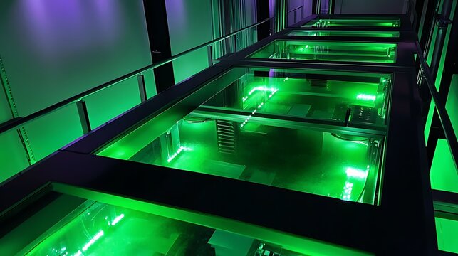 Bright green bubbles float in an abstract, water-like backdrop bitcoin