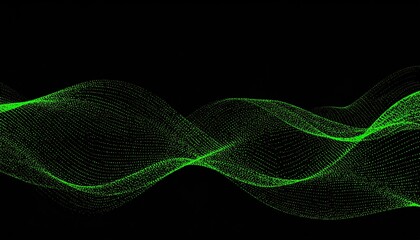 Abstract wave of glowing green particles on black backdrop