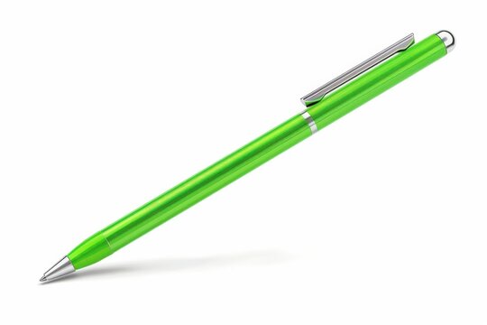 A vibrant green pen rests elegantly on a clean white surface, ready for creative expression and thoughts to flow freely isolated on transparent background