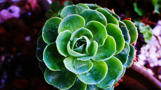Macro pink flower petals glistening with dew droplets and iridescent refraction