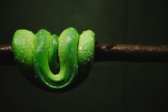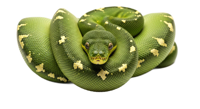 Closeup Portrait of a Green Python Coiled Gracefully in Natural Habitat