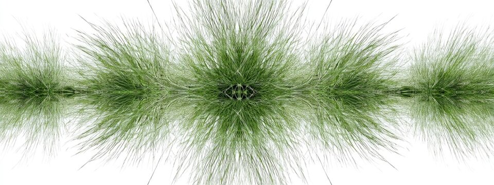 Symmetrical, light-green grass or plant tufts arranged in a horizontal band, with a mirrored, radiating pattern in the center