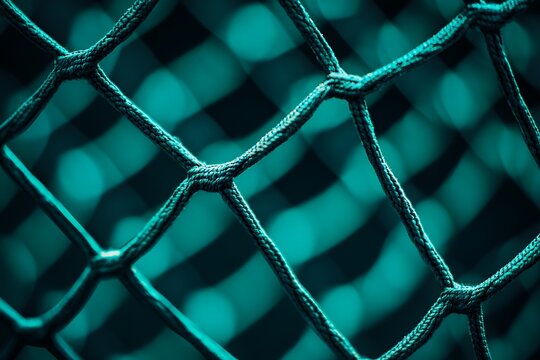 Close-up of green rope net outdoors with sunlight filtering through, creating a textured pattern and natural background.