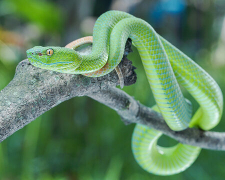 green snake, Gonyosoma oxycephalum, indonesian snake