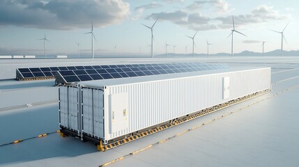 Renewable energy technology background, combining solar panels, wind turbines, and energy data streams, highlighting the future of sustainable, eco-friendly power technologies.