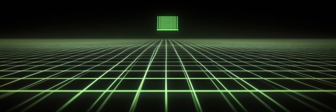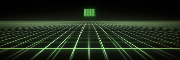 A glowing network grid emerges in a dark environment, with green text depicting a monitor icon symbolizing digital connectivity and support. Generative AI