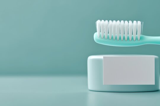 Mint green toothbrush beside a sleek container, on a calm teal background.