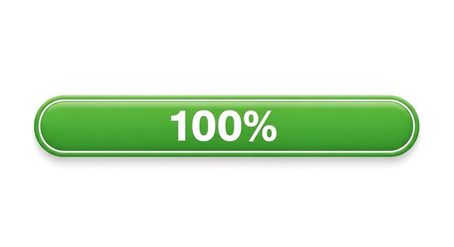 A vibrant green 100 complete button isolated on white background, symbolizing full achievement and progress