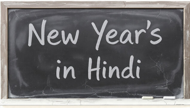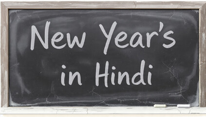 New Year's in Hindi Text on Blackboard