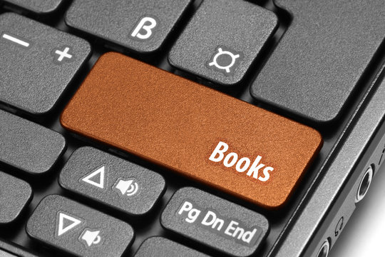 Books. Orange hot key on computer keyboard