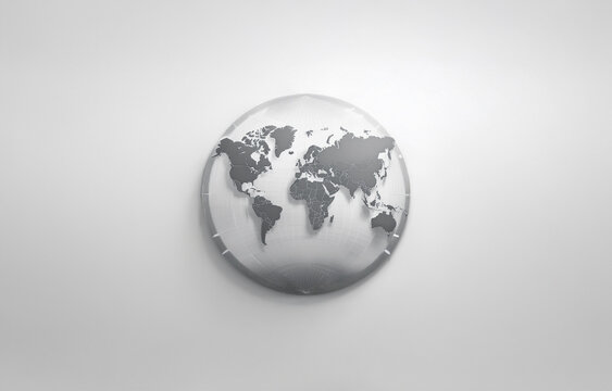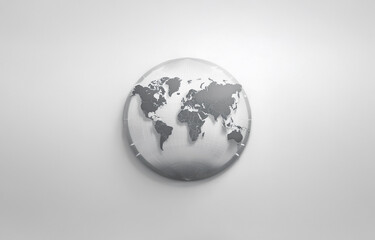 A simple, gray and white, 3D rendering of the Earth against a white background.