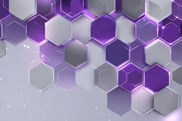 Abstract geometric background with glowing purple and grey hexagons creating a modern, futuristic, and sophisticated digital pattern for tech innovation