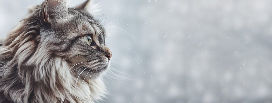 Majestic maine coon cat with fluffy gray fur in natural setting