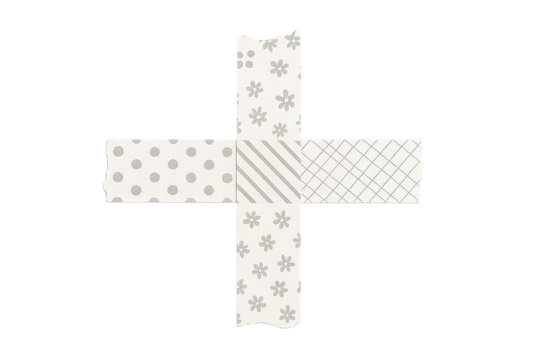 Washi tape plus sign creating a decorative border with various grey patterns, transparent background