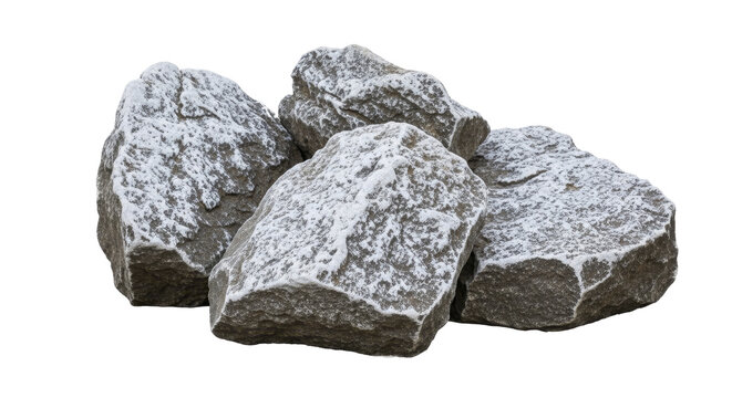 Rough textured grey rocks covered with white snow on a transparent background PNG image