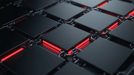 close-up of a technological grid with glowing red elements, conveying modern technology and digital processing