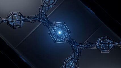 Abstract digital network with glowing blue light energy flow technology.