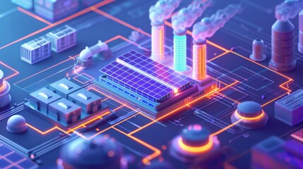 Dynamic digital grid visualization with glowing city infrastructure and data analytics displays, showcasing futuristic energy networks