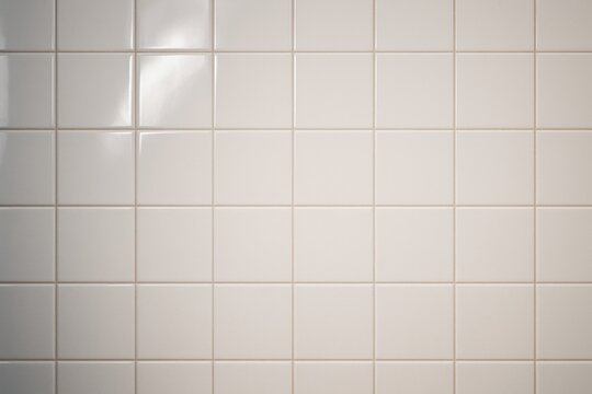 Clean ceramic tile wall background with soft lighting and empty copy space for design, poster, or creative template presentation mockup use. Ai generative