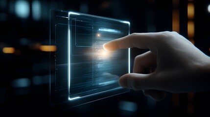 Facial recognition scan on a digital screen with biometric grid overlay, glowing authentication points, and a sleek, high-tech user interface.