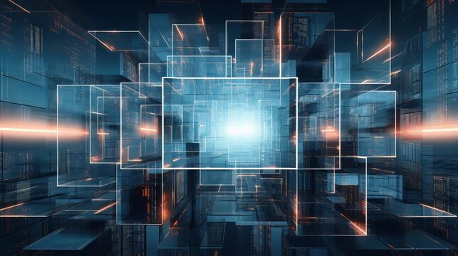 Digital abstract background with glowing blue lines and grid pattern depicting futuristic technology and innovation