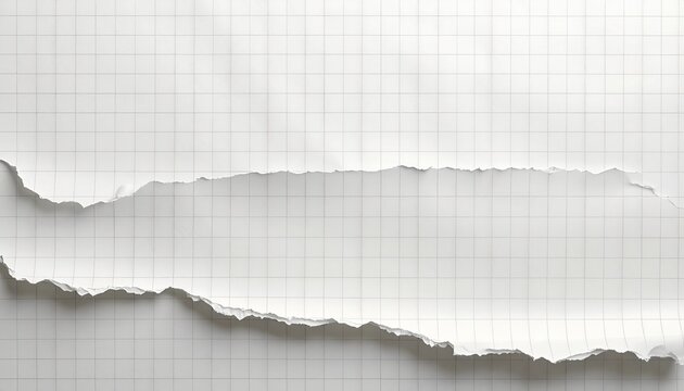 Abstract background of two torn strips of white graph paper. Layered texture with rough edges and grid patterns, perfect for conceptual designs and creative projects