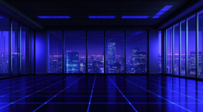 Confident presenter leaning on window with arms crossed, smiling in modern office studio