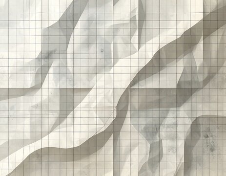 Detailed, folded paper with gridded lines creates abstract light and shadow